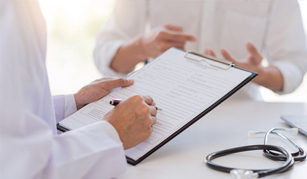 - 신분증, 진료의뢰서, 보험증 등 필요 서류를 제출합니다.